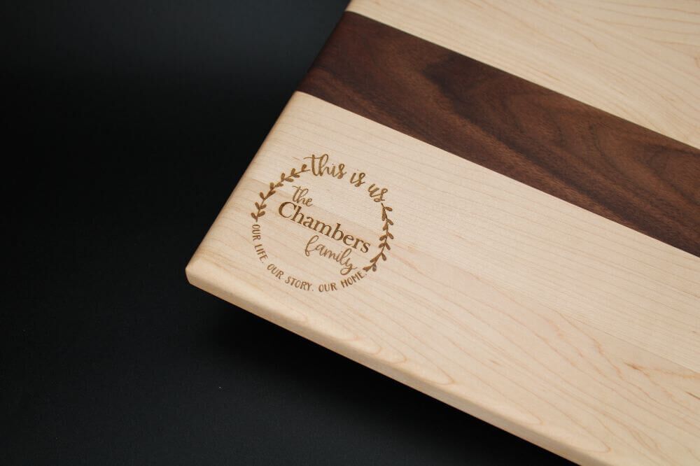 In addition to its exceptional craftsmanship and functionality, our Maple and Walnut Board (MMWMM) offers the option for personalized engraving. Our expert engravers can carefully etch your desired text or design onto the board, creating a truly unique and cherished piece that reflects your personal style or serves as a thoughtful gift for weddings, anniversaries, housewarmings, or any special occasion.